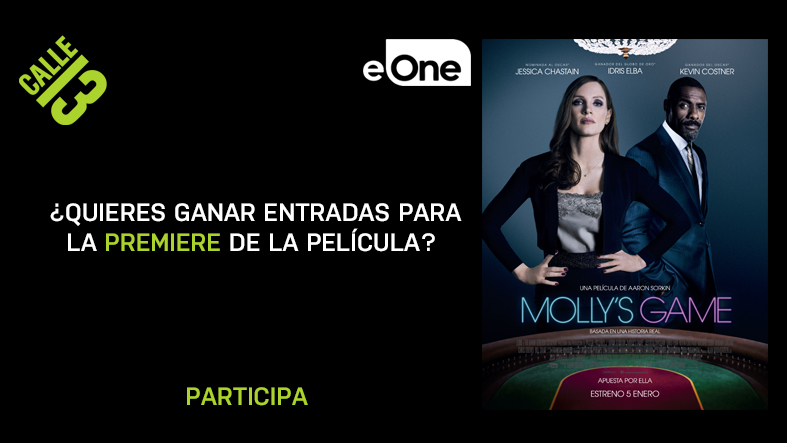 Molly’s Game está basada en la historia real de Molly Bloom (Jessica Chastain), una prometedora esquiadora de nivel olímpico que, al ver truncada su carrera deportiva, acabó organizando las partidas de póker clandestinas más exclusivas de Estados Unidos. A sus partidas acudían las más grandes estrellas de Hollywood, deportistas de élite, titanes del mundo de los negocios y, finalmente, miembros de la mafia rusa, hasta que Molly fue arrestada por 17 agentes armados del FBI en mitad de la noche. Inmersa en una batalla judicial, su único aliado en su lucha ante los tribunales fue el abogado criminalista Charlie Jaffey (Idris Elba), quien supo ver en ella una verdad mucho más sincera de la que la prensa sensacionalista publicó en sus páginas.